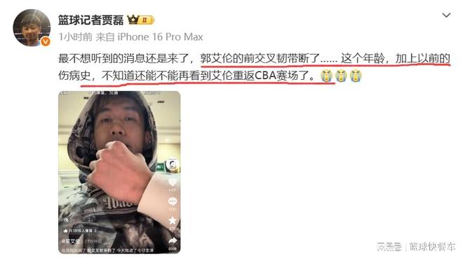 賽后,經(jīng)過醫(yī)院的診斷,郭艾倫的傷情終于出來了。根據(jù)最新消息,郭艾倫是前交叉韌帶斷了。作為一個33歲的老將,這是他最不愿意碰上的傷病。按照目前的狀況,郭艾倫本賽季大概率是回不來了。有知情人士透露,郭艾倫這個傷病康復周期比較長,大概率是一年。這也就意味著,郭艾倫已經(jīng)提前賽季報銷了。另外,以郭艾倫目前的狀態(tài)和傷勢,他是否能夠重返CBA,還真是一個未知數(shù)。