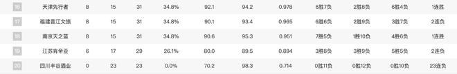18.南京天之藍(lán)(8勝15負(fù))