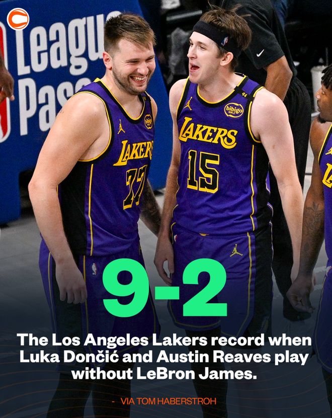 還有兩項數(shù)據(jù)特別的扎心,本賽季當(dāng)東契奇、里夫斯同時登場且勒布朗缺席的比賽,湖人拿到9勝2負的傲人戰(zhàn)績,勝率高達81.8%。(湖人每百回合凈勝對手+9.7分)