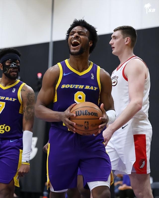首戰(zhàn)輪休的布朗尼·詹姆斯本場首發(fā)登場,出戰(zhàn)25分鐘,穩(wěn)穩(wěn)交出15分、2助攻和1籃板。全場的絕對高光時刻出現(xiàn)在第二節(jié)還剩不到兩分鐘時:布朗尼在三分線邊緣接球,直接加速殺入禁區(qū),上演了一記極其殘暴的“海報級”隔扣!這記堪稱發(fā)展聯(lián)盟“年度最佳”候選的重扣,直接幫球隊將領先優(yōu)勢擴大到了15分(62-47)。不得不說,布朗尼在發(fā)展聯(lián)盟的這段時間表現(xiàn)搶眼,場均能拿下15.3分、3.7次助攻和3.2個籃板。