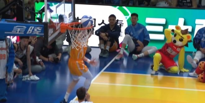 第一位出場(chǎng)的是上海球員劉禮嘉,他由隊(duì)友洛夫頓協(xié)助扣籃,劉禮嘉空接大風(fēng)車(chē)扣籃連續(xù)3次失敗,隨后換成折疊暴扣獲得41分。