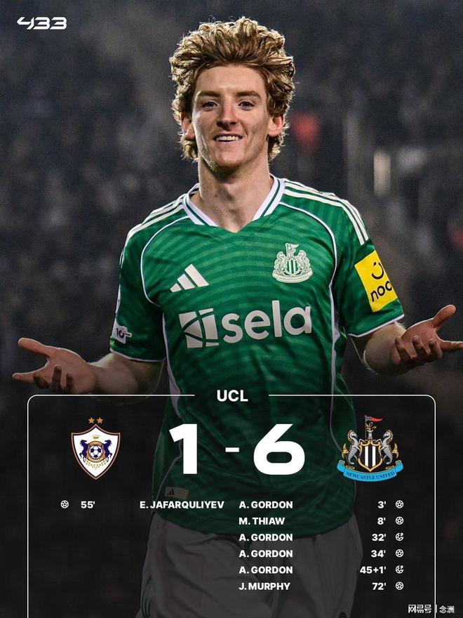 紐卡客場6-1擊敗卡拉巴赫,次回合將于北京時間2月25日在圣詹姆斯公園球場打響。戈登上演大四喜,特里皮爾?助攻佳夫破門,卡拉巴赫扳回一城,雅各布-墨菲替補建功。