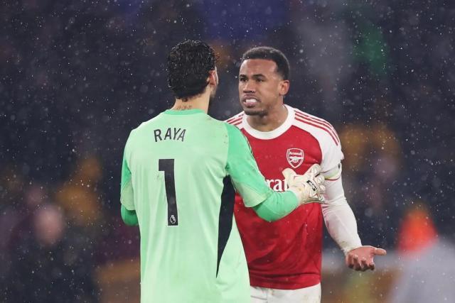 熱蘇斯賽后與狼隊隊員推搡的場景,描繪出了槍手球員的心態(tài)。而絕平球后,加布里埃爾與拉亞爭執(zhí)的場面或許更加令人不安——面對狼隊一腳稀松平常的傳中,他倆撞在一處,他倆都認為,這是對方的錯。