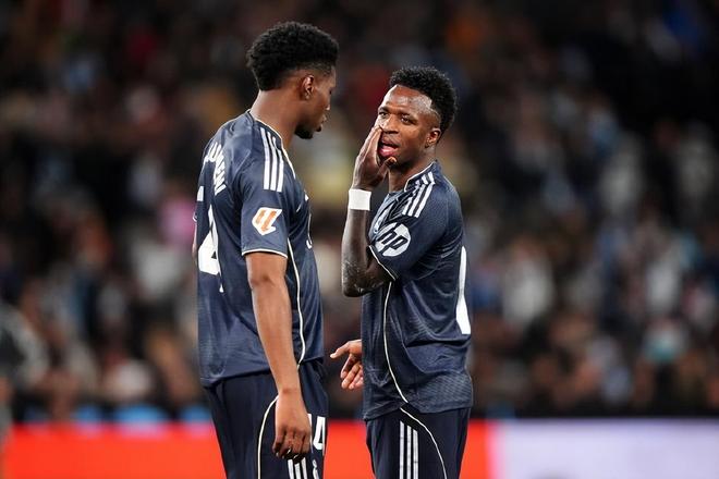 沒有姆巴佩的速度,沒有貝林厄姆的傳導(dǎo),沒有羅德里戈?duì)恐?,皇馬進(jìn)攻端幾乎沒有組織起像樣的機(jī)會(huì);第67分鐘,巴爾韋德前場(chǎng)積極反搶,維尼修斯斜塞,帕拉西奧斯倉(cāng)促起腳沒有意外偏出球門;第71分鐘,阿諾德開出角球,胡特格拉禁區(qū)內(nèi)明顯手臂揚(yáng)起,主裁判卻在觀看VAR后沒有吹罰點(diǎn)球,反而吹罰楚阿梅尼推人犯規(guī)在先。
