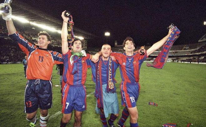 當(dāng)時羅納德-科曼、羅馬里奧以及(租借回歸的)斯托伊奇科夫已經(jīng)離隊,一年后克魯伊夫也離開了球隊。但這并沒有影響菲戈在巴薩的成功。他在1997年與巴西球星羅納爾多一起贏得歐洲優(yōu)勝者杯(決賽1比0擊敗巴黎圣日耳曼),并拿到兩次西甲冠軍和兩次國王杯冠軍。