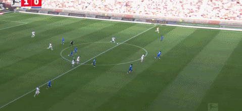 第37分鐘,泰里耶助攻科法內(nèi)推射破門迅速扳平比分,勒沃庫森1-1