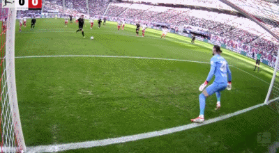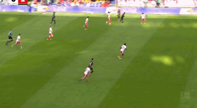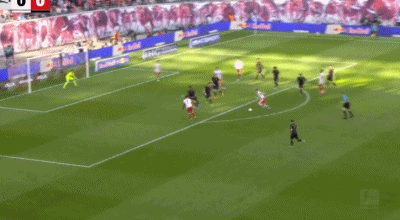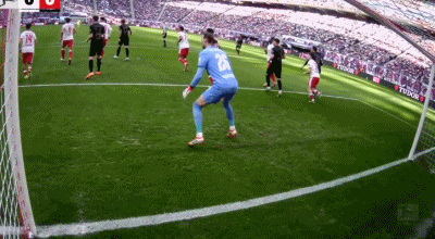 第40分鐘,法比安-里德傳中,菲爾豪爾推射破門,奧格斯堡1-0萊比錫