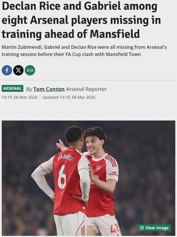 倫敦足球記者TC消息,有8名一線隊球員缺席了阿森納對曼斯菲爾德的賽前訓練。