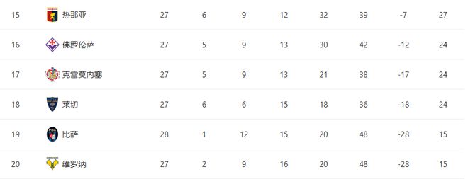 在歐冠資格區(qū)附近,競爭已經(jīng)進入白熱化階段??颇c羅馬同積51分,分別排在第四和第五位,而尤文圖斯則以50分緊隨其后。從第四名到第六名之間的差距只有1分,爭四進入了白熱化。