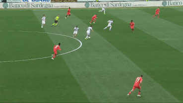 易邊再戰(zhàn),第56分鐘,卡利亞里終于抓住機會扳平比分。塞巴斯蒂亞諾·埃斯波西托在門前完成一次精彩的魚躍沖頂,將比分改寫為1-1。