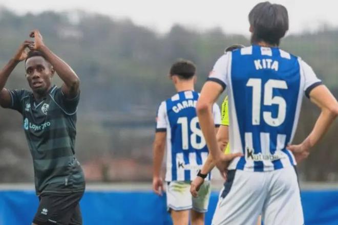 比賽進(jìn)入傷停補(bǔ)時(shí)階段,場(chǎng)上比分已定格在4-2,皇家社會(huì)B隊(duì)客場(chǎng)獲勝。就在此時(shí),當(dāng)值主裁判阿隆索·德·埃納突然吹停比賽。據(jù)現(xiàn)場(chǎng)報(bào)道,德·埃納在接到皇家社會(huì)B隊(duì)球員的投訴后,走向場(chǎng)邊,雙臂交叉做出標(biāo)志性的“X”手勢(shì)——這是西甲聯(lián)盟規(guī)定的停止比賽以處理種族歧視事件的標(biāo)準(zhǔn)信號(hào)。