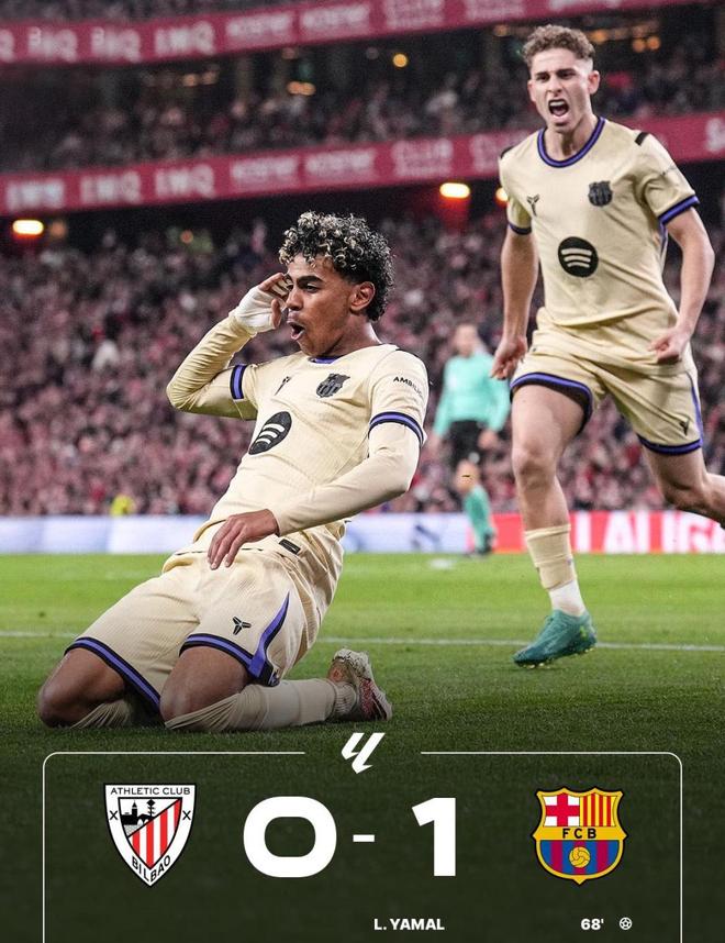 最終,憑借亞馬爾的關鍵進球,巴薩1-0擊敗畢爾巴鄂競技,拿下聯賽三連勝,并繼續(xù)以4分優(yōu)勢領跑西甲積分榜。